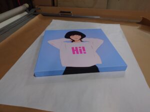 弊社工場は毎朝氷点下からのスタートのため、作品を温めながら割れてしまわないように張り込みます。今流行のギャラリーラップです。